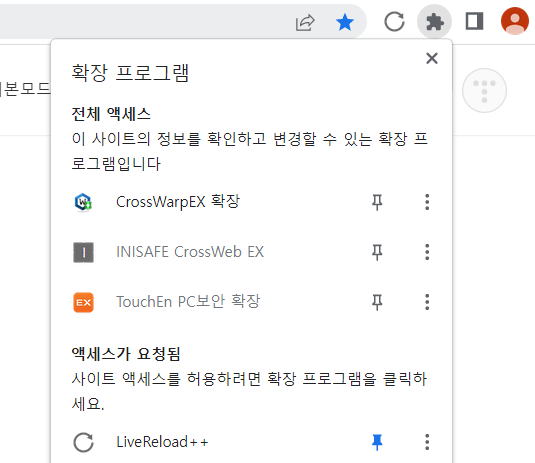 설치하면 위와 같이 새로고침모양이 생기거나, 퍼즐 모양을 누르면 볼 수 있다.