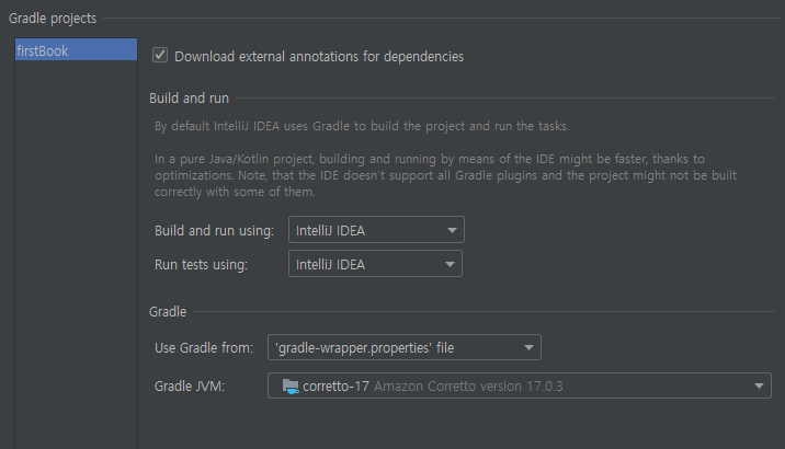 이거는 좀 다른 블로그들과는 달라서 의아했다. 어떤 사람은 Gradle로 해야한다고 하는데 나는 IntelliJ IDEA로 설정해서 실행하니 잘 됐다.