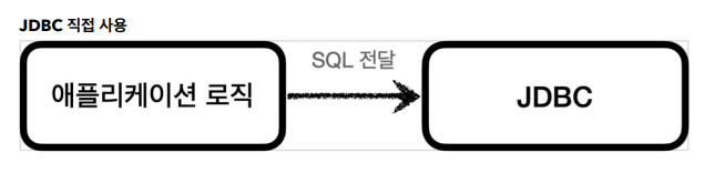 JDBC 직접 사용 : 애플리케이션 로직 -> SQL 전달 -> JDBC