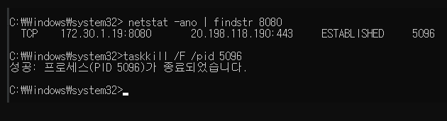 // 위 명령어를 통해 출력된 목록의 process_id를 입력하여 강제 종료시킨다.